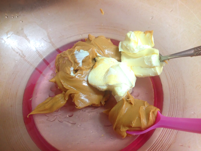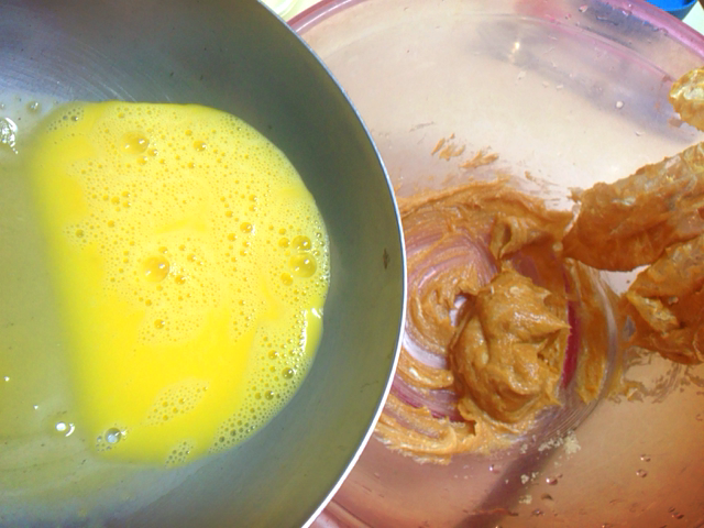 쉬쉬 섞으면 이런 모양이 된다. 땅콩버터와 진짜 버터가 섞여 엄청 느끼한 냄새가 풍긴다. 시각적으로는 X같지만.