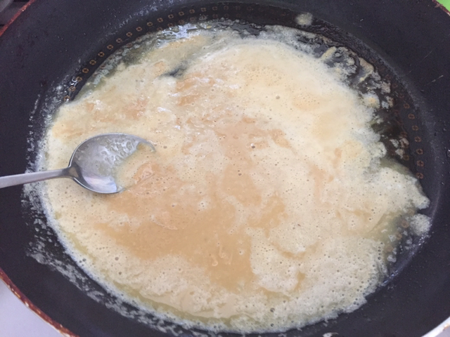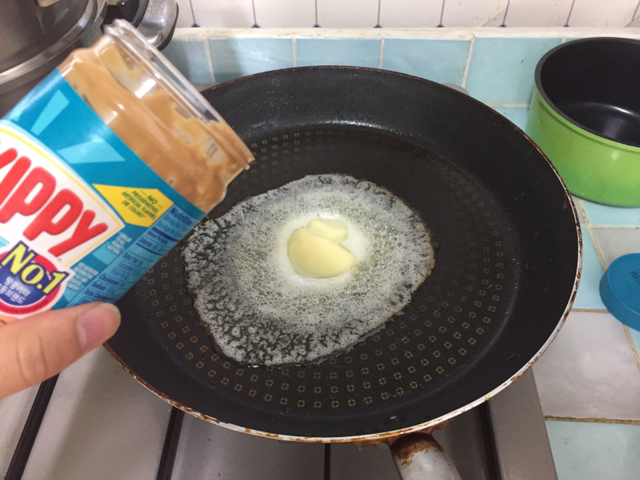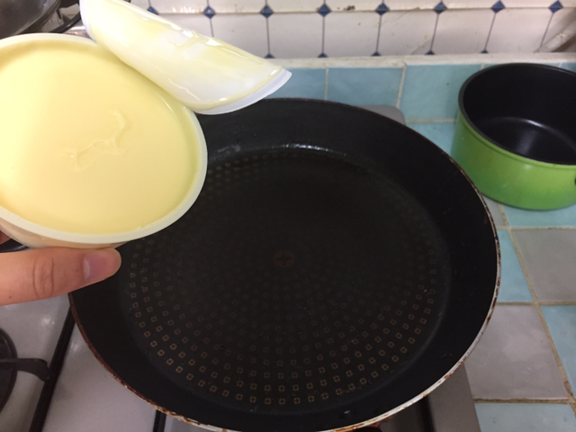 자 이제 버터를 한움큼 떠서 후라이팬에 올린다. 스르륵 그 뜨거운 불판위에서 사라지는 걸 볼 수 있다. 우리의 월급처럼.