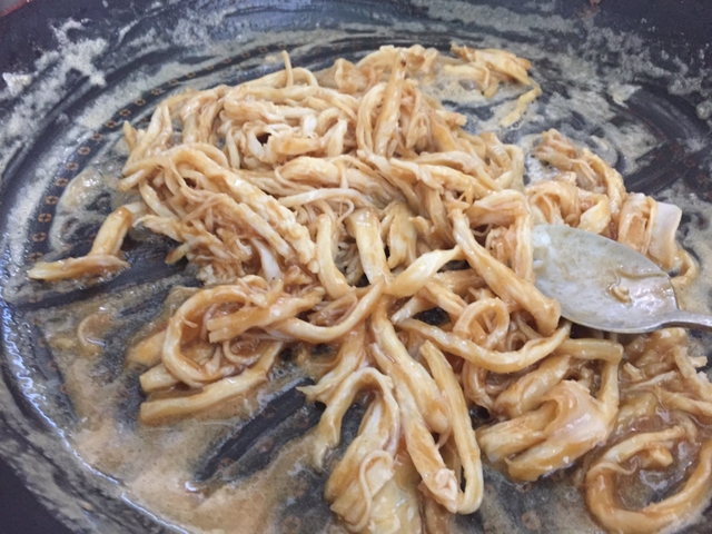 소스 위에 진미채 불린 버전을 투하한다. 말랑말랑 진미채. 이빨에 끼는거 넘 싫어.