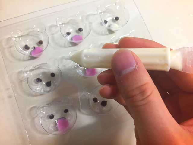 냉장고에 30분 정도 굳히면 이렇게 곰돌이가 태어난다. 응애. 같이 들어있던 봉지에 하나씩 차곡차곡 넣고,