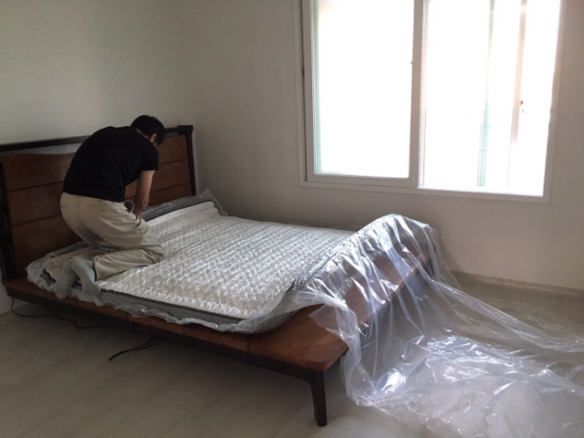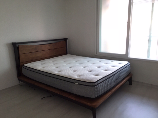 프레임 위에 매트리스를 올렸다. 프레임은 원목 타입으로, 장모님이 정말 마음에 들어하셨다.