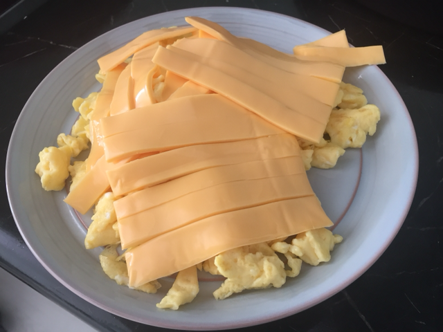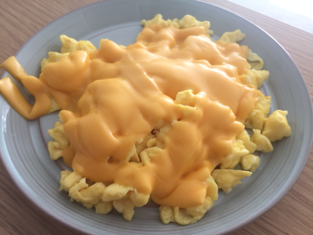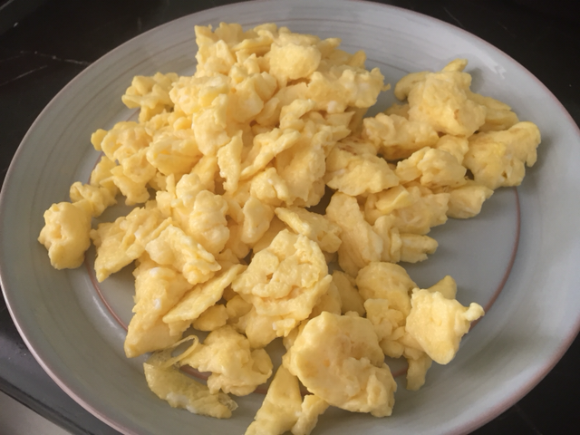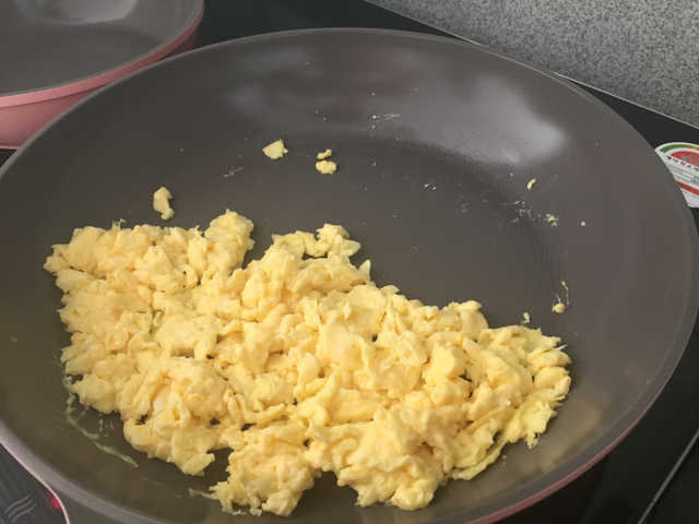 이건 오믈렛이 아니라 스크램블이긴 하다. 원래 만들려던 거는 가볍게 모양을 잡아 이쁘게 만들어진 오믈렛인데 이미 익어버린 계란은 모양이 잡히지 않았다.
