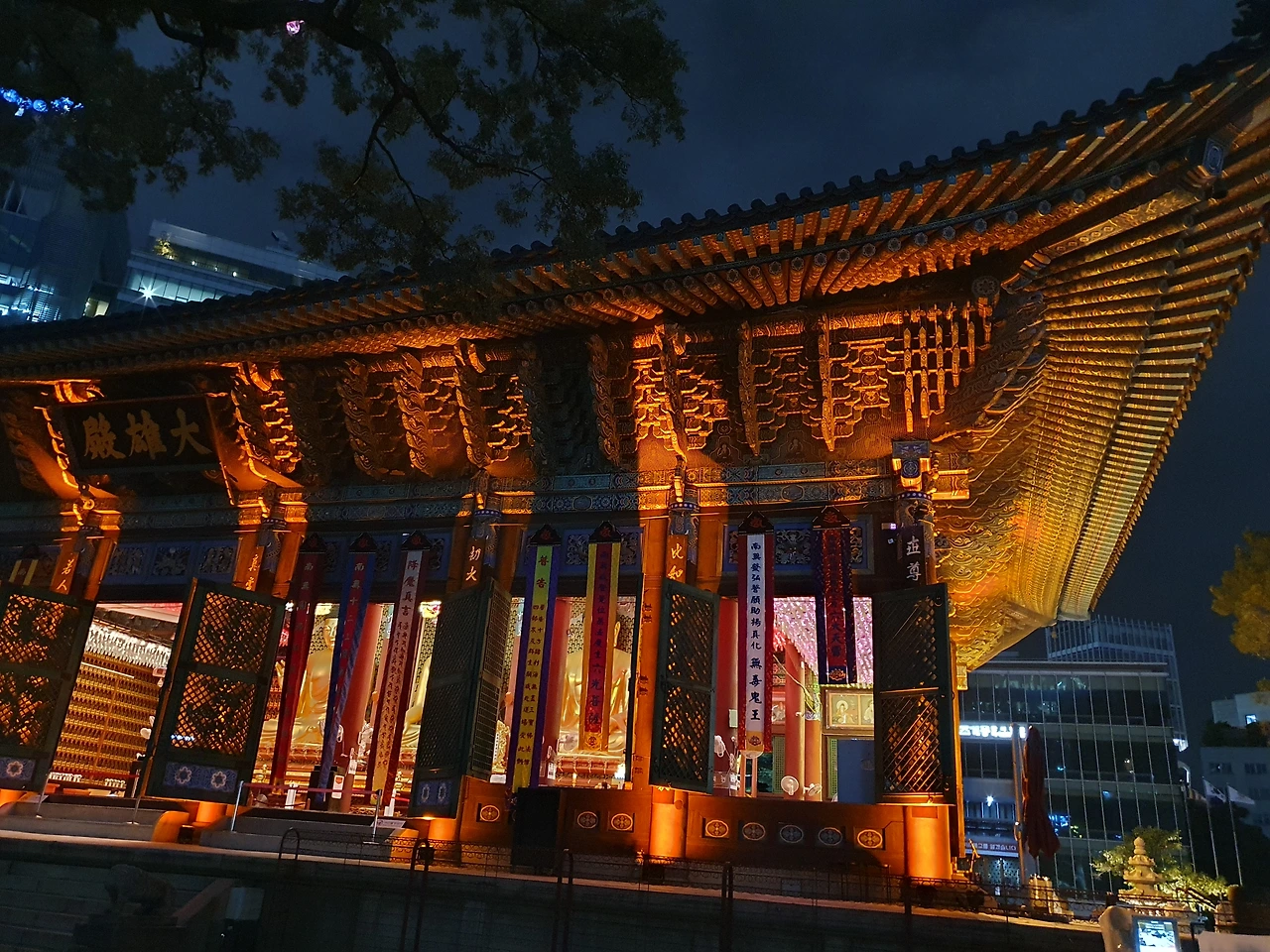경내를 쉬엄쉬엄 거닐다, 잠시 경계를 넘어 화려한 세상으로 걸어 나왔다.