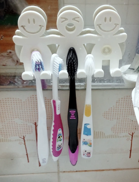 칫솔 순서를 이리저리 옮겨보더니 결국 엄마, 아빠 사이에 걸어 두었다.