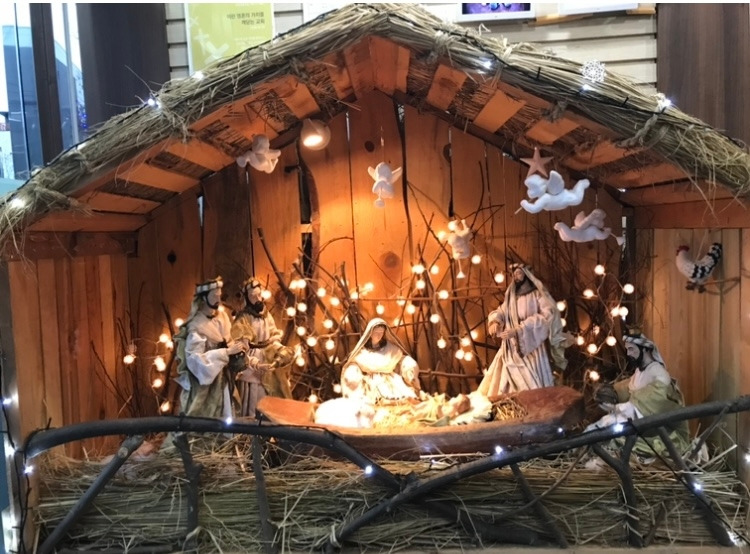 동방박사와 성모 마리아는 동대문을 뒤져서 모셔오고, 구유통을 구해 그 안에 아기예수님을 눕혀놓았다. 지푸라기를 깔고, 양 인형을 끌어들이고, 아기 천사와 별, 그리고 주위에 조명을 둘렀더니 모든 것이 함께 어우러져 이천 년 전 유대땅 베들레헴의 마구간이 그럴싸하게 재현되었다.