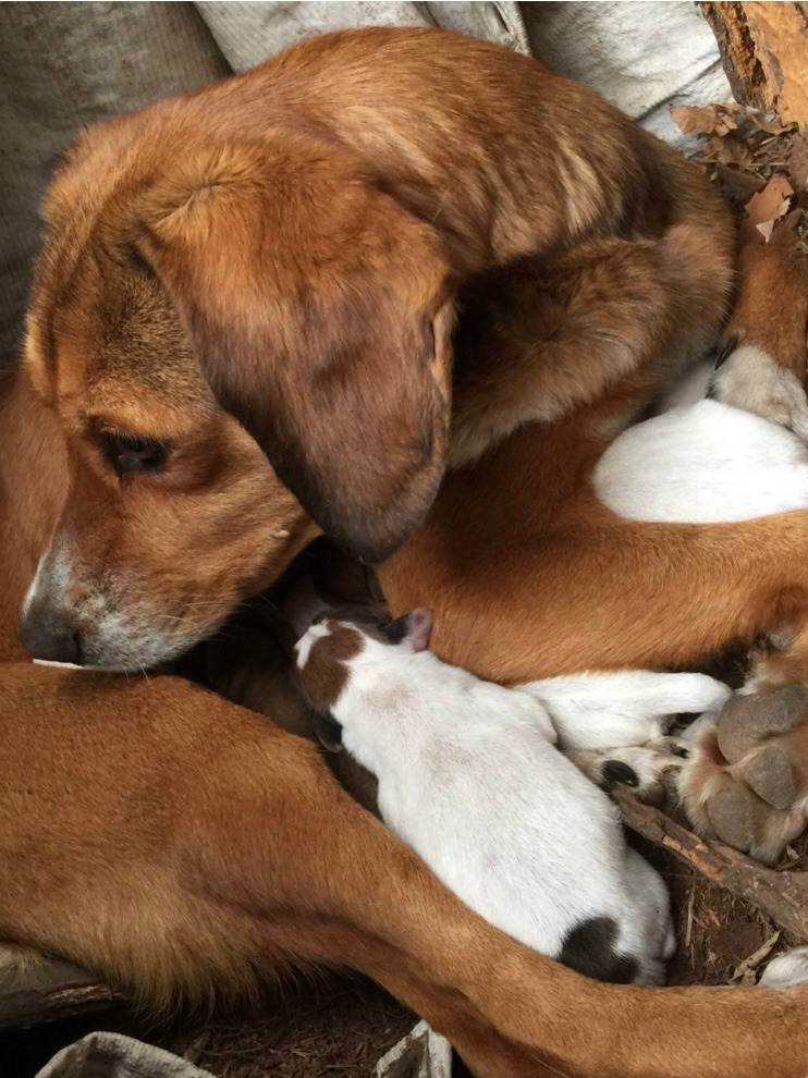 예전에 어떤 부랑자가 쳐놓았던 다 낡은 천막 밑에서 그 누렁이가 몸을 풀었더란다.