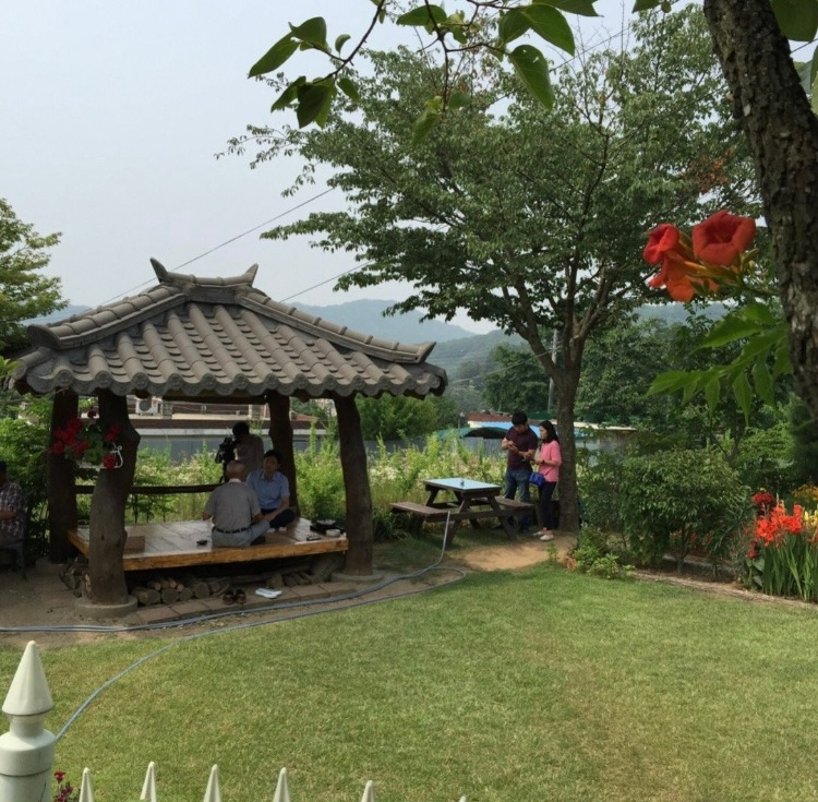 그러자 감나무 밑 똘이 녀석도 낮잠을 포기한 채 밖으로 나와 귀를 쫑긋 세워 듣는다.