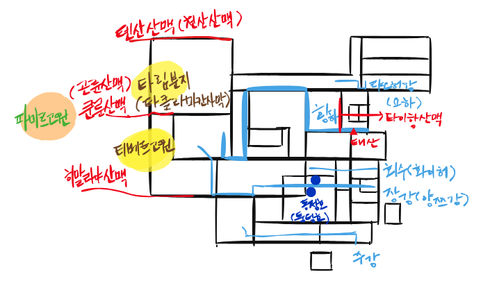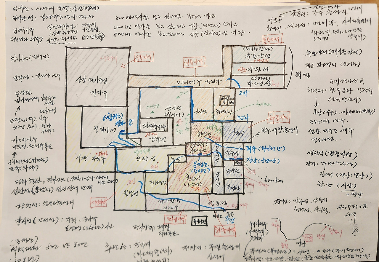 행정구역과 산맥, 강 등 자연환경까지 매핑(mapping) 하기 위해 각 구역간 경계의 변화를 다음과 같이 시도했습니다.