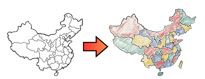 '중국'이라는 복잡한 지도를 단순 기호로 사상(寫像, mapping) 하기 위해서 다음과 같은 반복적 절차를 가졌습니다.