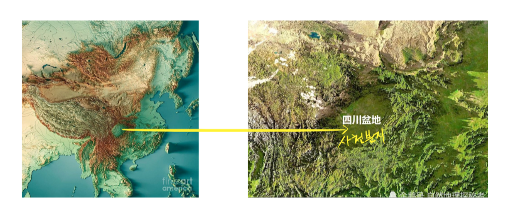 한(漢) 나라의 건국 황제인 유방과 삼국지 유비의 촉(蜀) 나라가 거점으로 삼았던 지역이 바로 이곳입니다. 쓰촨 옆에는 4개의 직할시 중 면적(약 8만 km²)이 가장 넓고, 인구(약 3천만 명)도 가장 많은 충칭시가 위치해 있습니다. 윈난석굴로 유명한 윈난성(운남(雲南))과 대장정(1934-1935)때 중국공산당 내 마오쩌둥이 실질적 권력을 잡게 된 구이저우성(귀주貴州))도 있죠.