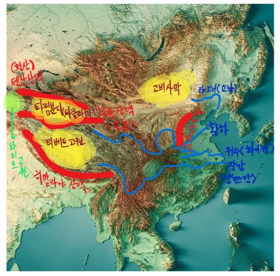 중국 땅의 모양은 통상 '닭'으로 많이 이야기합니다. 내륙 몽골지역이 닭의 등으로, 만주와 신장위구르지역이 머리와 날개에 해당하죠. 동중국해 쪽으로 도톰하게 튀어 나온 곳은 닭의 가슴과 배부분이 되겠네요.