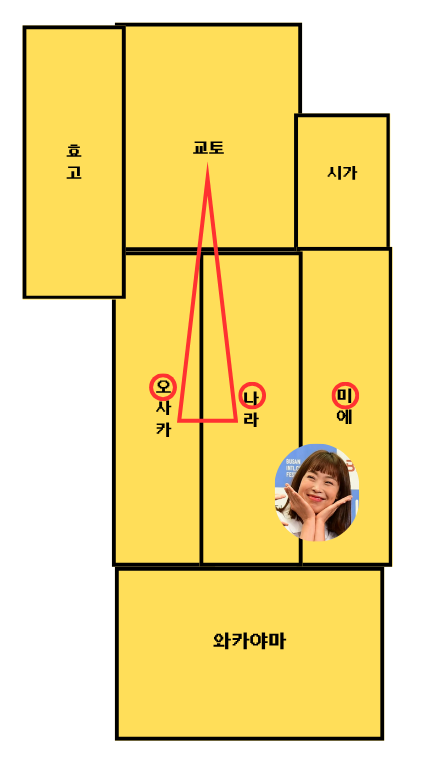교토는 오사카, 나라와 함께 삼각형으로 익혀둡니다.