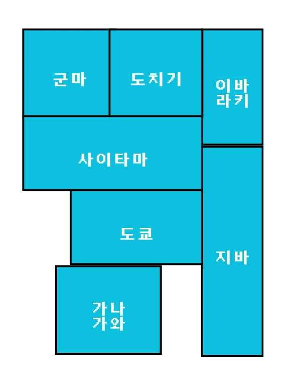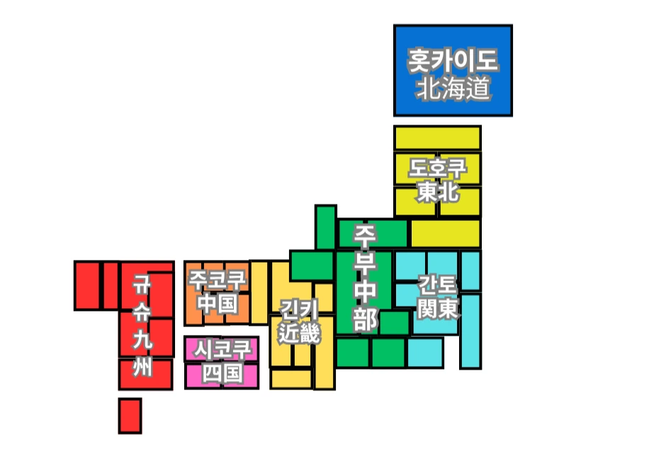 홋카이도와 오키나와는 익숙하여 생략했습니다.