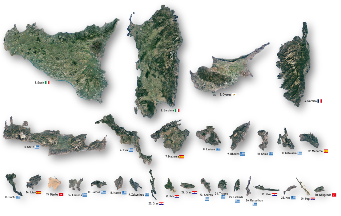 다음으로는 지중해의 섬의 크기를 순서대로 정렬해 보겠습니다.