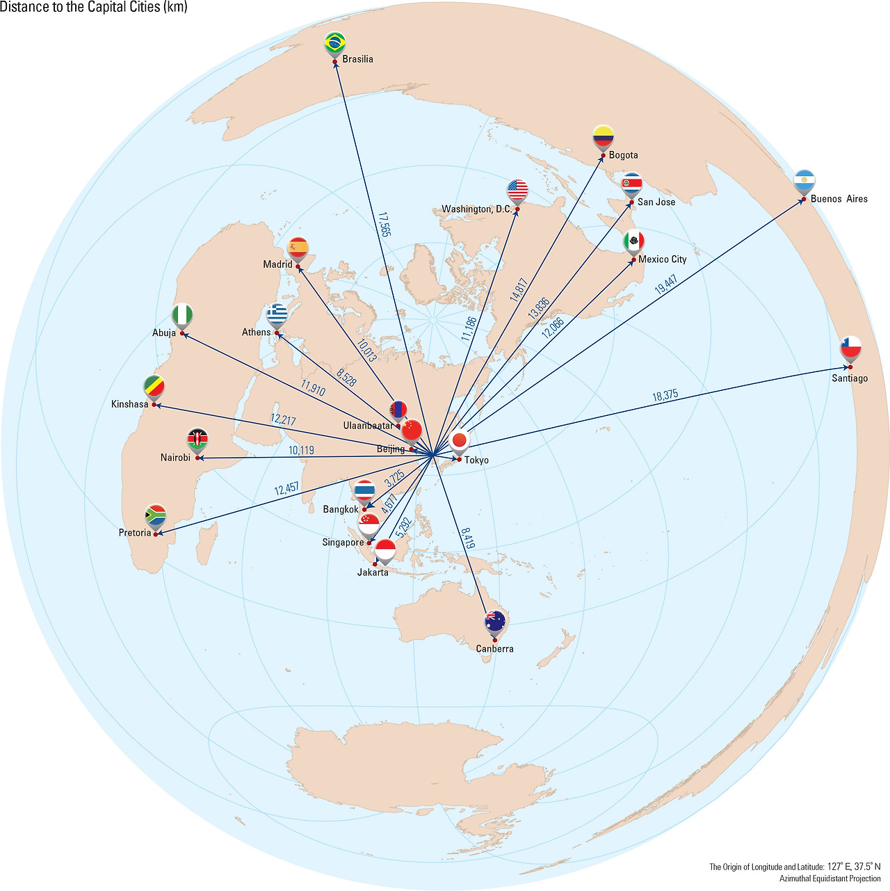 대한민국에서 가장 먼 나라는?