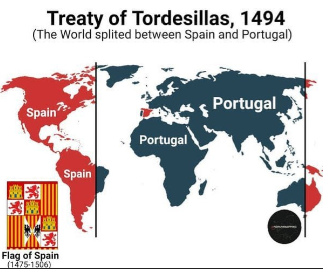 스페인은 남아메리카의 대부분을 차지하게 되지만 '토르데시야스 조약(1494년)'으로 브라질은 포르투갈의 식민지가 됩니다. 브라질의 면적은 약 850만 km2으로 남아메리카 면적(약 1,700만km2)의 거의 절반을 차지하고 있습니다. 참고로 브라질은 세계에서도 5번째로 큰 나라이며, 남미 12개국 중 에콰도르와 칠레를 제외한 10개의 나라와 국경을 접하고 있습니다.