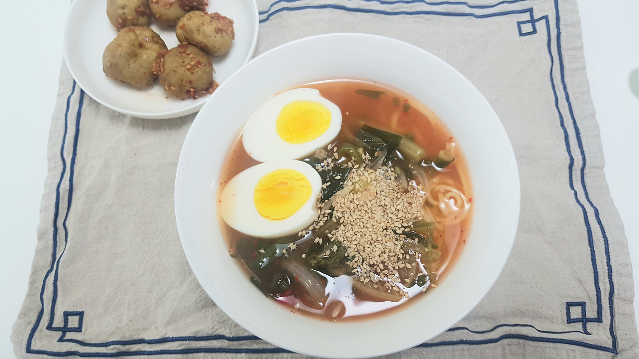 부족하지만 집밥의 레벨이 올라갔다는 점을 이 열무국수를 통해 느꼈다. 면도 알맞게 끓이고 무엇보다 설탕을 넣는 융통성을 발휘하게 됐다는 데 내 자신을 칭찬해주고 싶다. 살찐다고 설탕 안넣었으면 후 집밥 지겨워 하고 말았을 것이다. 설탕 덕분에 한그릇 싹 비웠다.