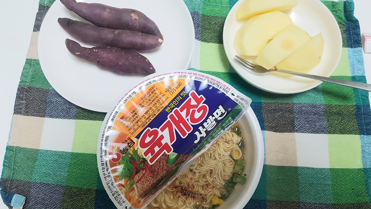 지겨워 못참겠다. 진짜 오랜만에 컵라면에 물을 부었다. 헐 맛있어...고구마가 주식이 됐다. 전쟁난 것 같다. 생각해보니 전시 상황 비슷하기도 하니까.
