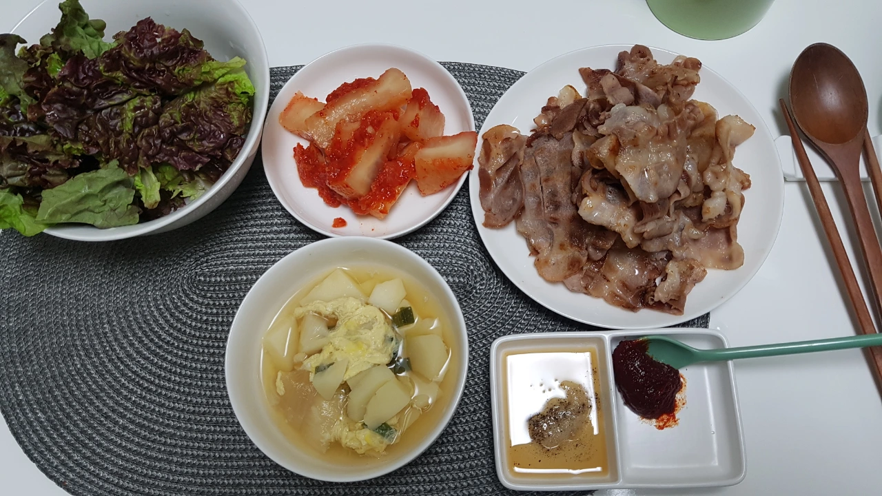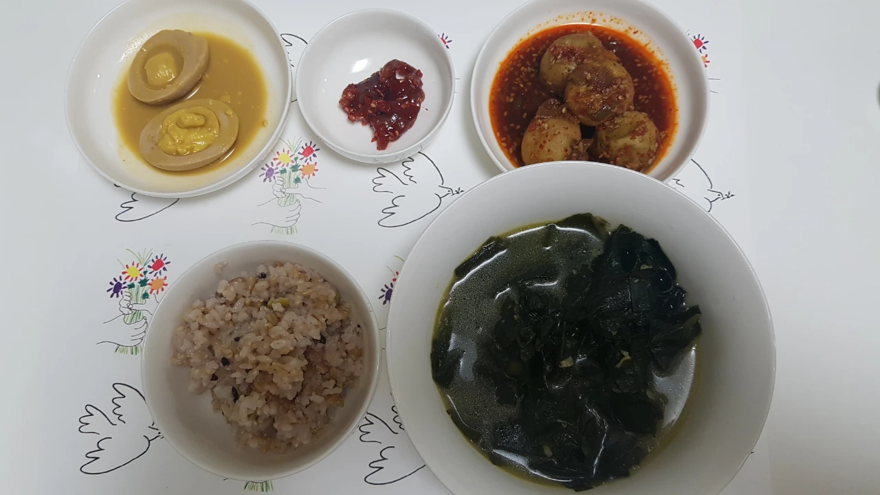 미역국은 이제 잘 끓이게 됐다. 그동안 내가 좋아하는 미역국을 맛있게 끓일 수 없어서 깊은 고민에 빠졌었다. 쓱닷컴에서 좋아보이는 미역을 사봤더니 비로소 맛이 정상궤도에 진입했다. 문제는 미역이었다. 밑반찬은 엄마가 해줌.
