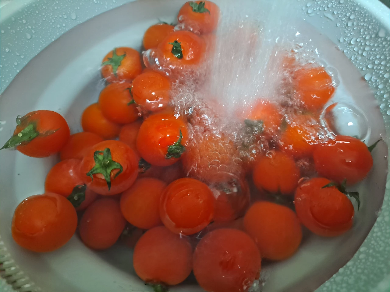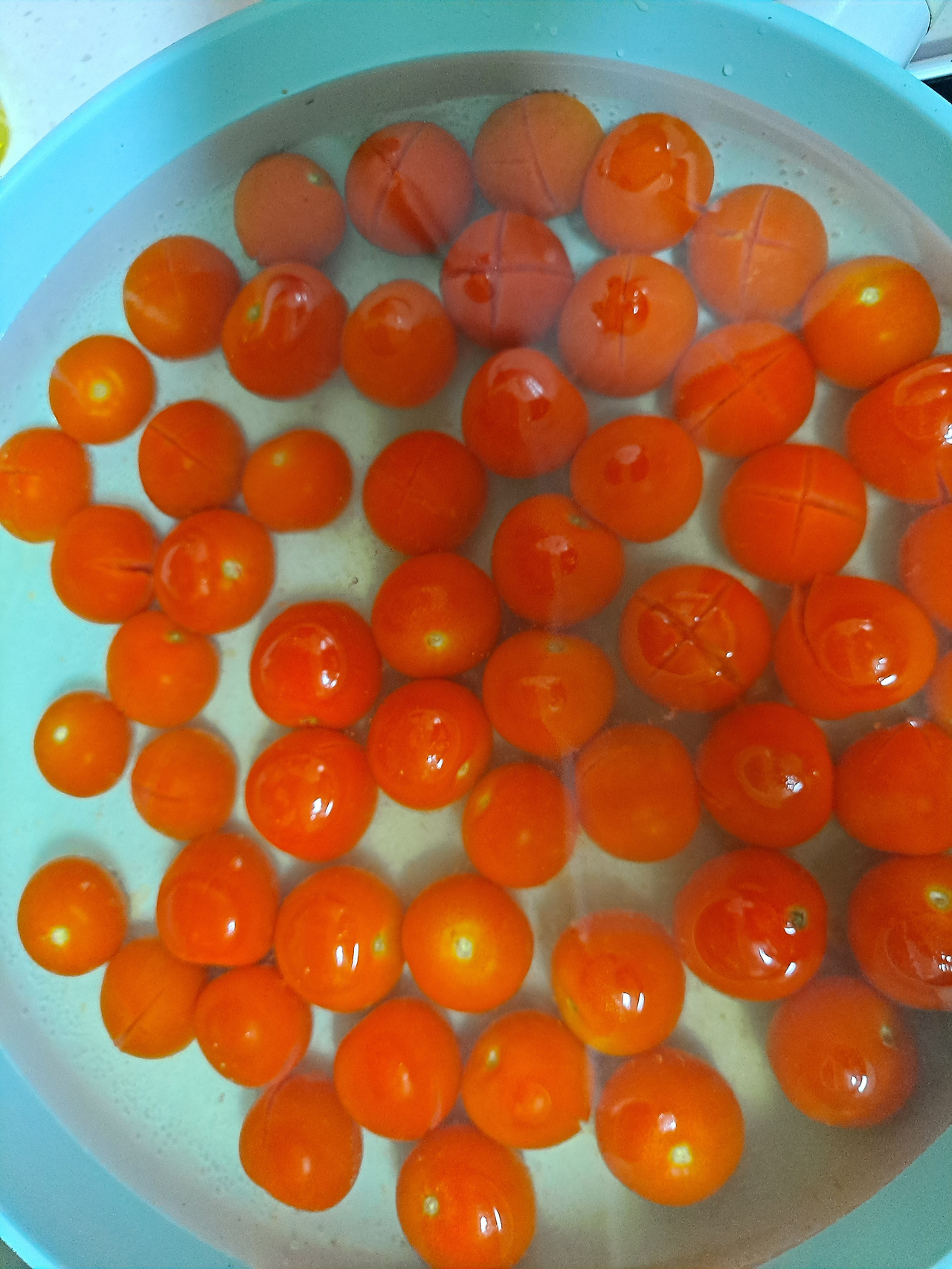 1. 토마토를 깨끗이 씻어 꼭지를 따고 칼집을 낸다.