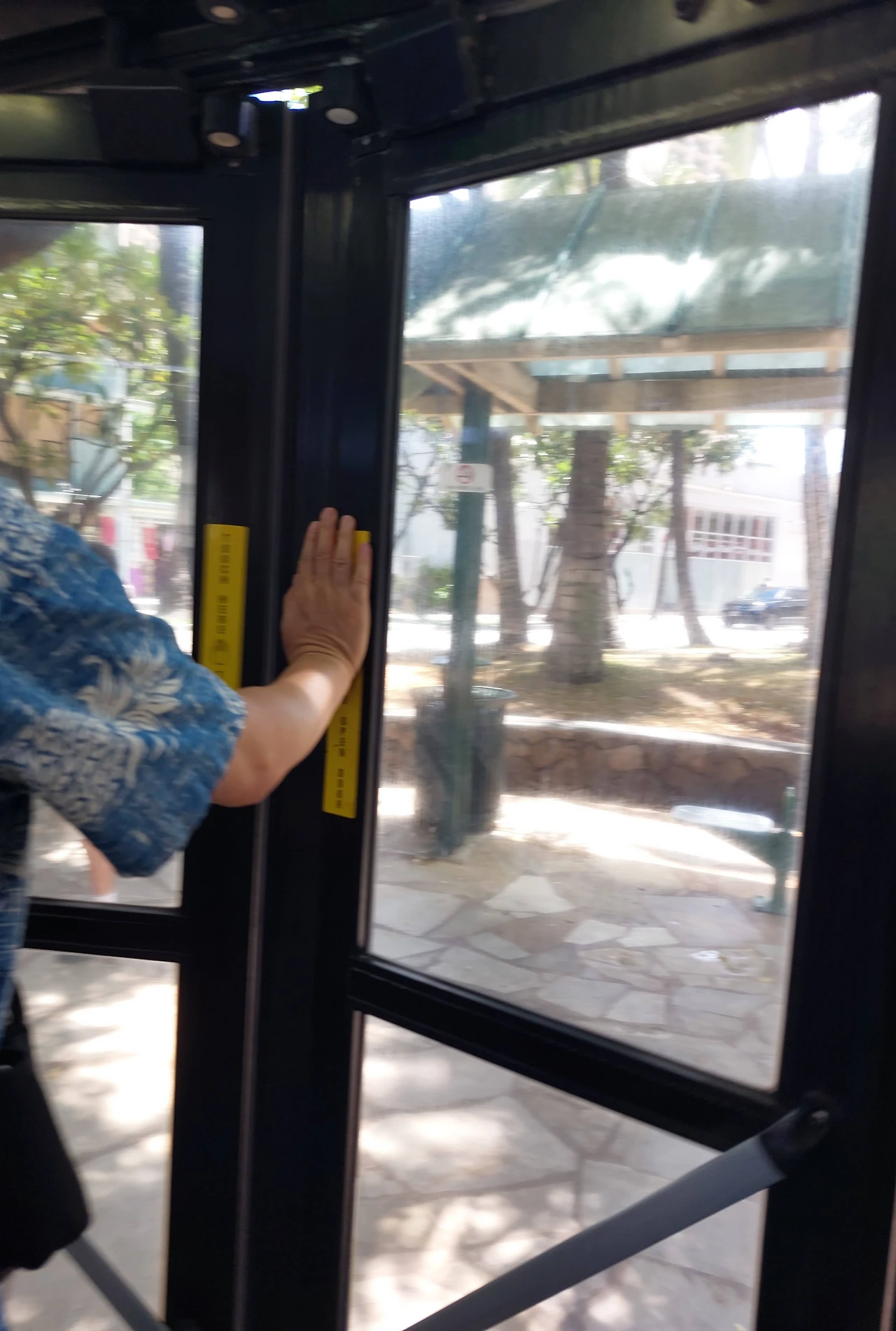 내릴 때가 되면 버튼이 아니라 빨랫줄처럼 창가에 걸려있는 줄을 당기면 되고, 앞이나 뒤로 내리면 되는데 혹시 뒷 문이 안 열리더라도 당황하지 말고 자연스럽게 앞 뒤 문 중 하나의 push'미시오'표시가 있는 곳을 고객님이 몸소 손으로 살짝 미는 '체험을 하면' 문이 열린다.