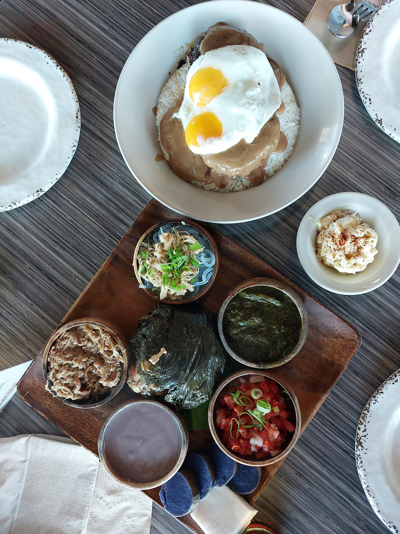 가장 손쉽게 접할 수 있는 Locomoco는 밥 위에 두툼한 쇠고기 패티를 얹고 데미글라스 소스를 끼얹은 후 fried egg를 두 개 얹는 것으로 한국의 ‘함박스테이크 정식’과 맛도 모양도 비슷하다. 계란은 스크램블로 해도 되는데 사진마다 sunny side up 이어서 그게 정통이지 싶어 그렇게 주문했고, 나머지는 골고루 sampler.