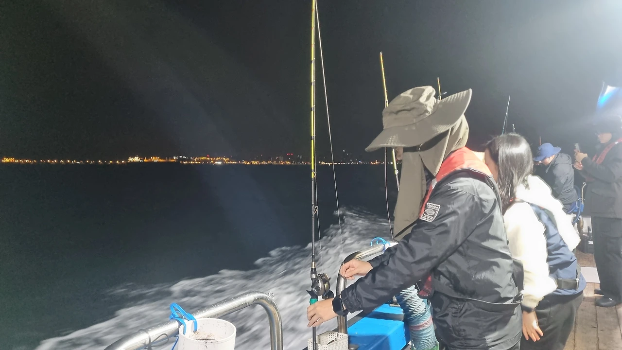 쭈구미잡는 까맣게 너른 바다 위에서