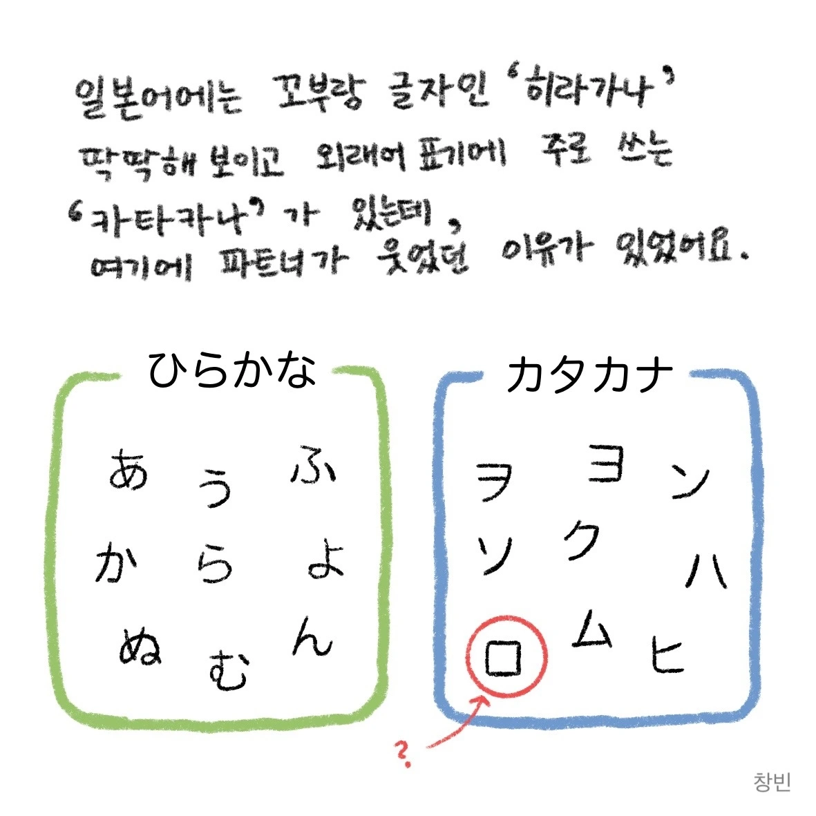 오늘 만화에서 다룬 '가타카나(カタカナ)'는 일본어 공부를 시작하고 맞이하는 하나의 벽입니다. 외래어 표기를 위해 만들었다는 이 글자는 좀처럼 눈과 손에 익지를 않는데, 실제로 공부를 하며 많이 사용하는 기회도 없어서 더 곤란합니다.