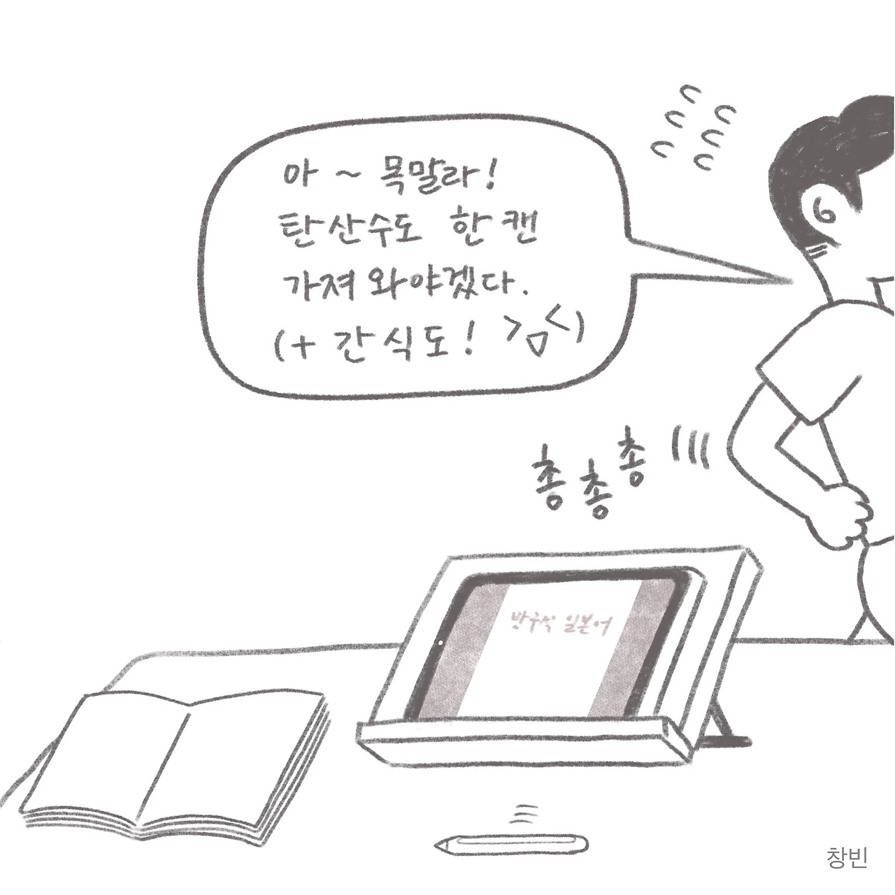 그래도, 언젠가 그만두는 날이 오겠지. 만화를 그려야 할 때(또는 브런치에 글이 뜸했으니, 초안이라도 적고자 할 때)가 오면 또 책상 앞에 앉아서 고민하는 시간을 갖겠지 하고 너무 넘치지 않게만 잡아둡니다. 이렇게 보내는 시간도 어떻게든 도움이 될 거라고 믿어요. 오늘도 이렇게 글감이 되어주었고, 만화로 그려봐도 재미있게 봐주실 것 같습니다.