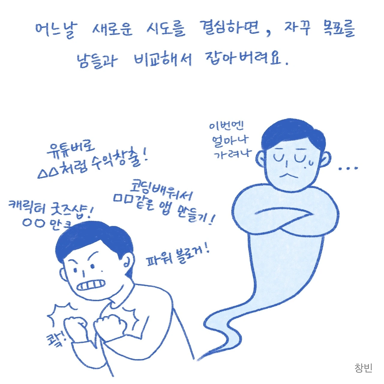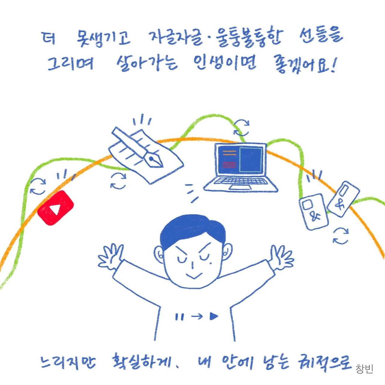 제게는 인스타그램에 만화를 1년 넘게 연재하면서도 계속 머릿속에 맴돌던 질문이 있습니다. 새로운 일을 시도하며, 제대로 하고 있는 건가 불안한 마음을 갖는 모든 분들이 비슷한 생각을 해보신 것 아닐까요?