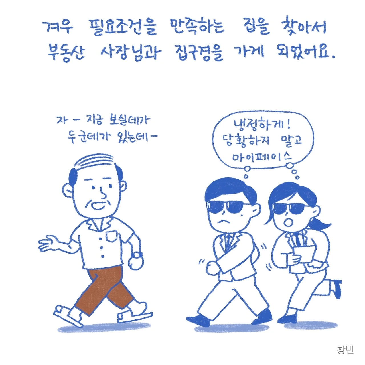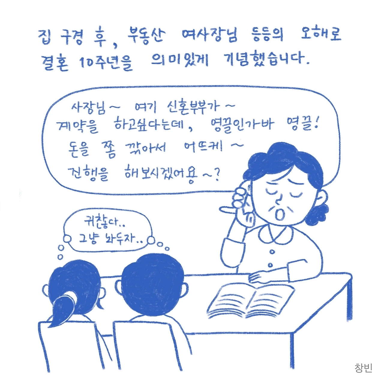 계약 후에는 당분간 만날 일이 없는 사이이고, 이제 막 만난 데다가 우리가 살 집을 잘 찾을 수 있게 도움을 구해야 하는 약자의 입장에서 어쩔 수 없다는 마음이 민망한 하하하로 튀어나왔겠지요. 이제 가끔씩 비슷한 오해를 받으면 '참 보는 눈이 없으신가 보다'하고 오해한 채로 내버려 두기도 합니다.