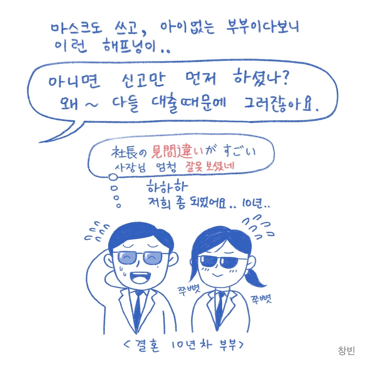 이제 결혼 11주년을 바라보는 부부인데, 오늘 만화에 담긴 이야기를 실제로 많이 겪었습니다. 유독 부동산에 들렀을 때 자 겪는 일인데, 몇 번이나 겪어본 결과 아래의 이유로 과감한 선 넘기를 시도하였던 것이 아닌가 해요.