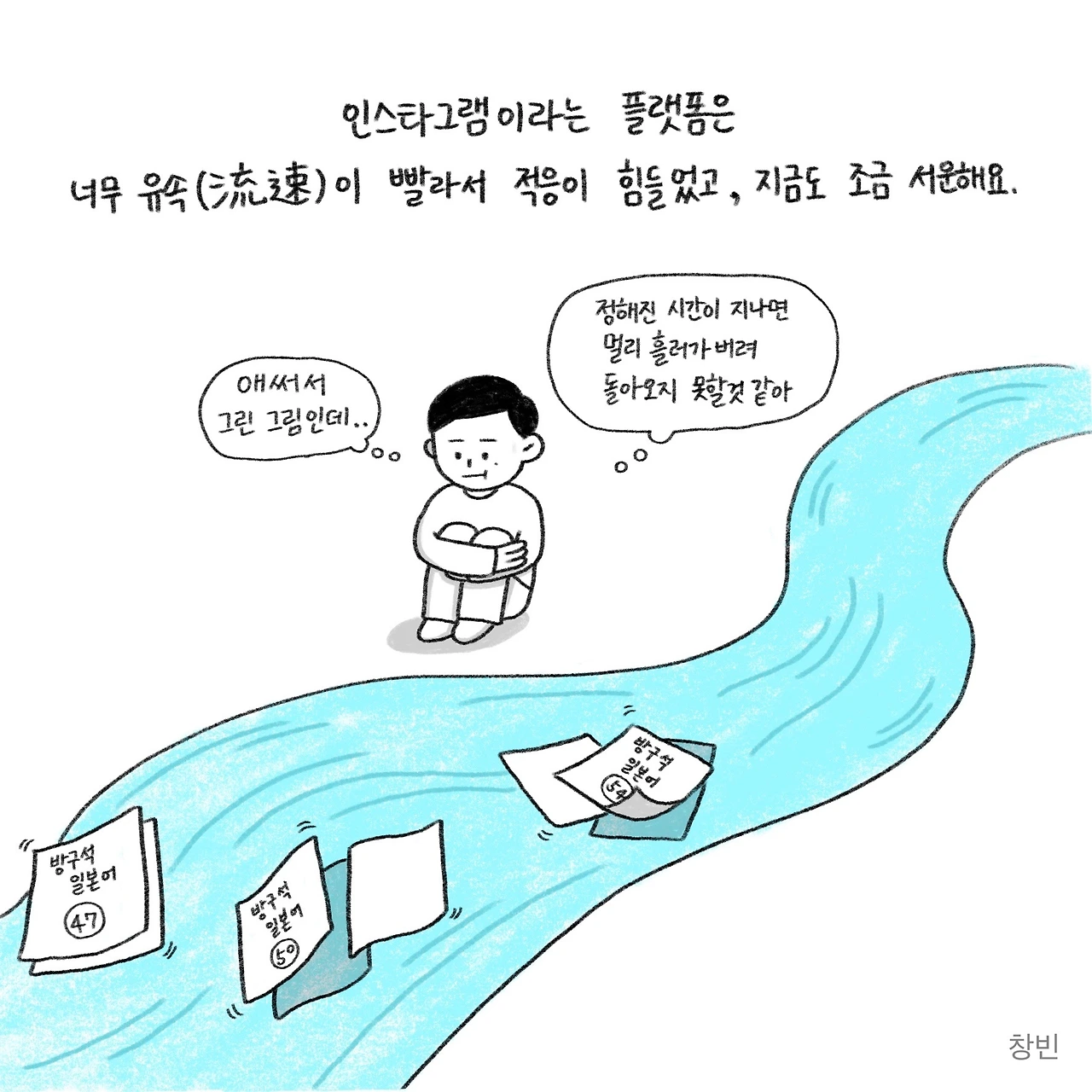 인스타그램에도 연재는 유지하겠지만 1년 365일, 24시간 흘러가는 강물에 작품을 흘려보내고 있다는 상실감도 무시할 수 없습니다. SNS의 한계라고 해도 좋겠지요.