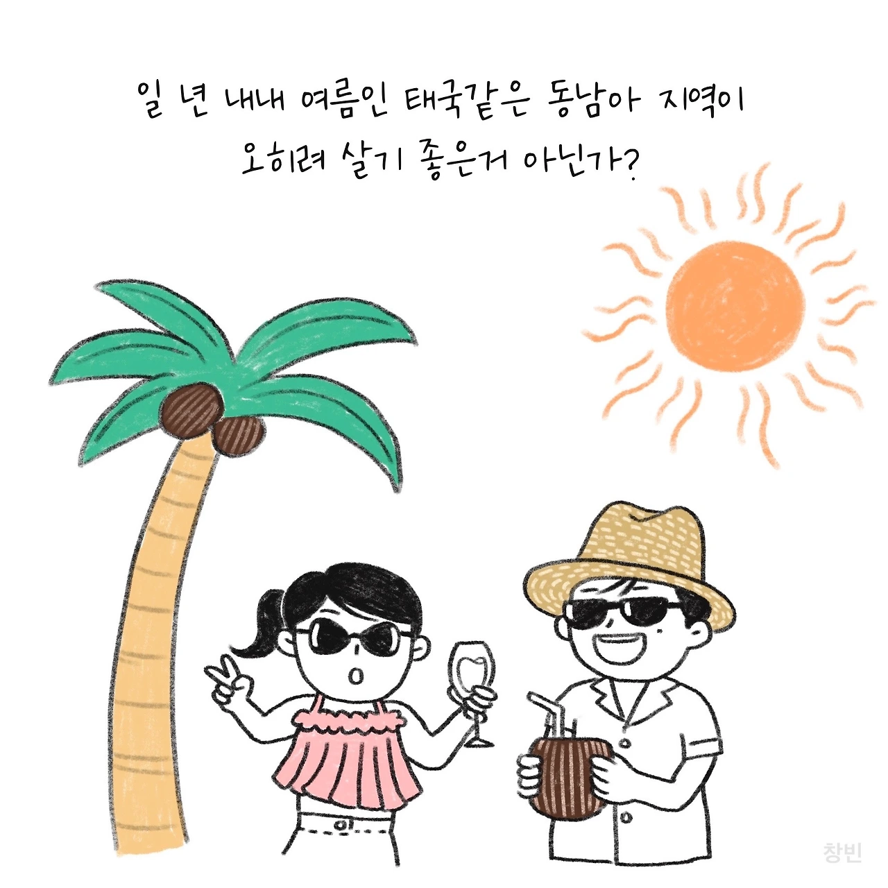 1년 내내 덥거나, 1년 내내 추운 나라에서는 이런 고민을 덜어낼 수 있지 않을까? 행복한 신혼여행을 보냈던 태국에서 아내와 이야기를 나누었던 것 같아요. 철마다 챙겨야 하는 일도 많고, '계절가전'따위는 사용하지 않는 일관된 환경은 우리 삶에서 겪는 고민의 많은 부분이 사라지지 않겠느냐고요. 물론 나름의 고충은 있겠지만.