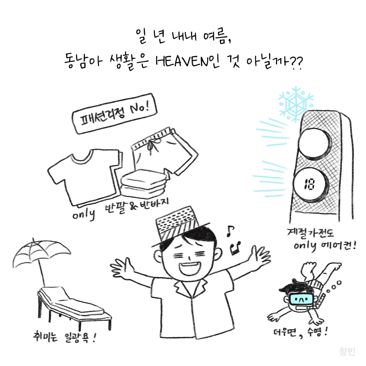 날씨가 한결같은 곳에서의 삶은 어떨까? 고민했던 날이 있어요. 오늘 만화는 그 시절의 기억을 담았습니다.