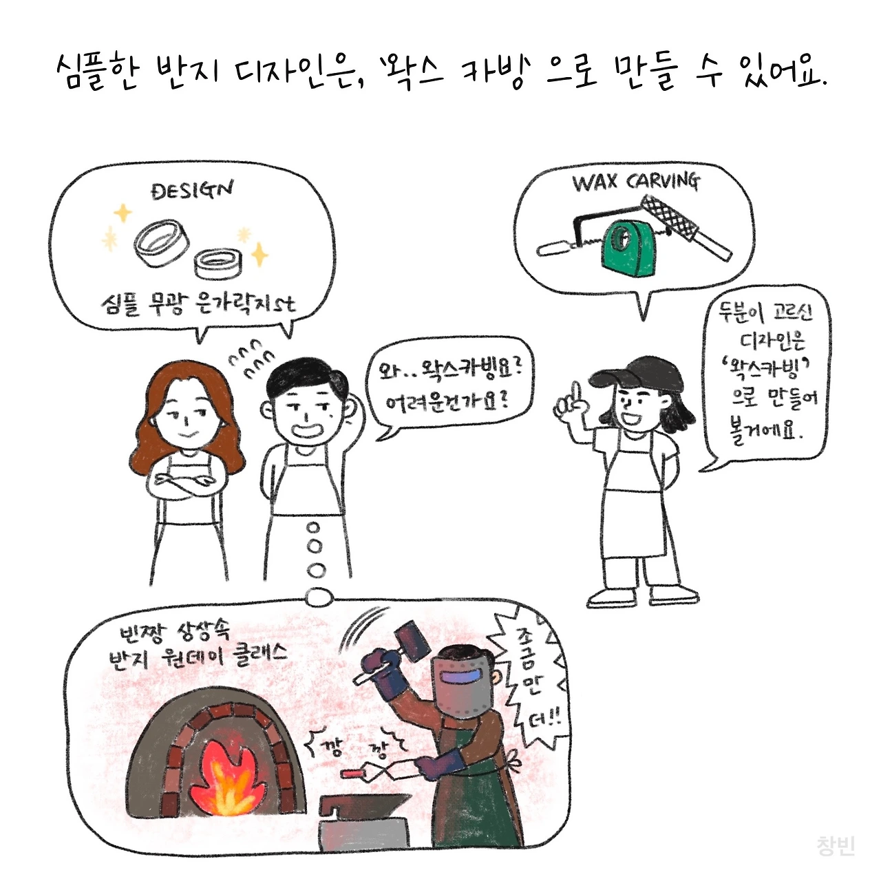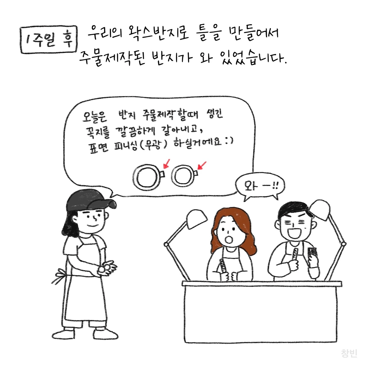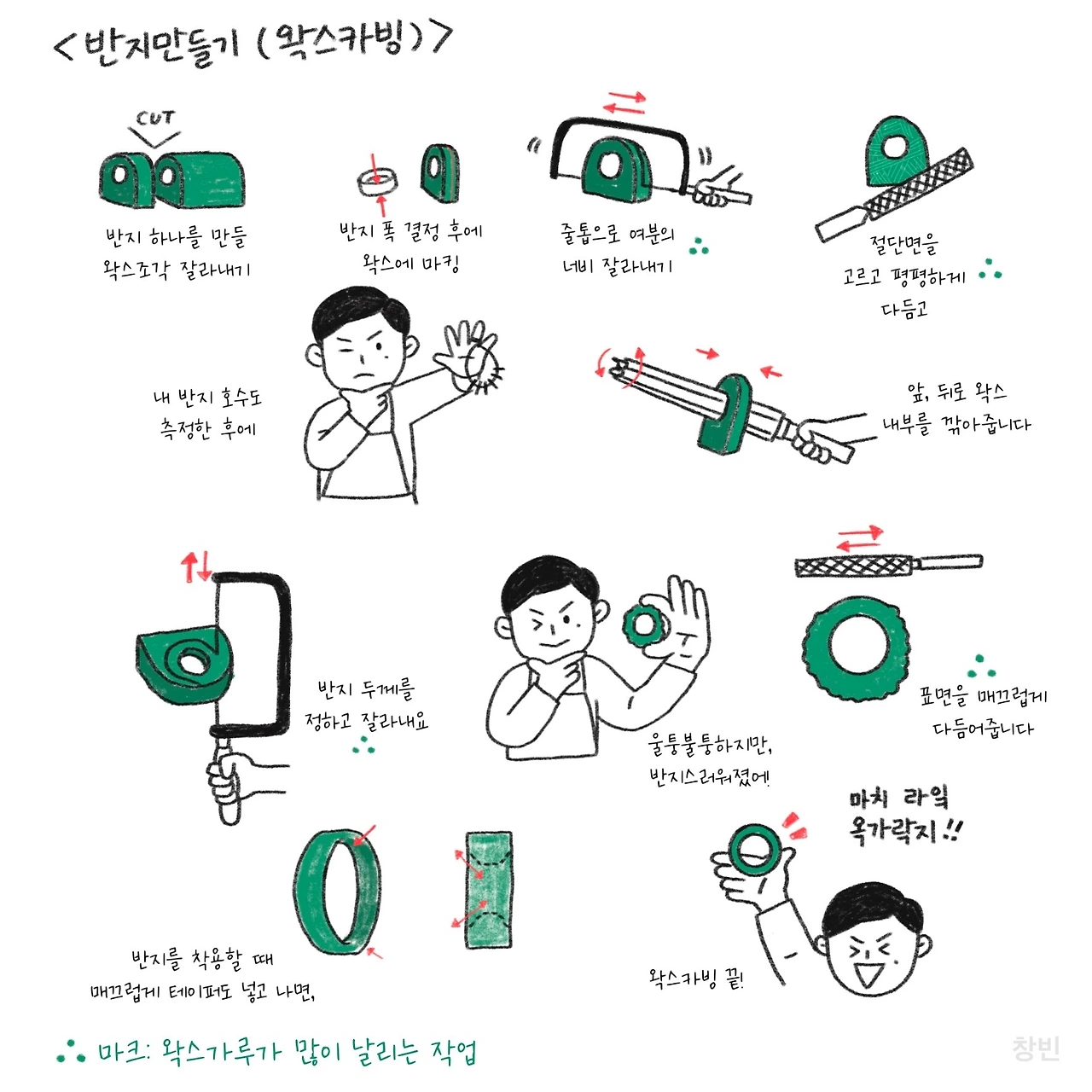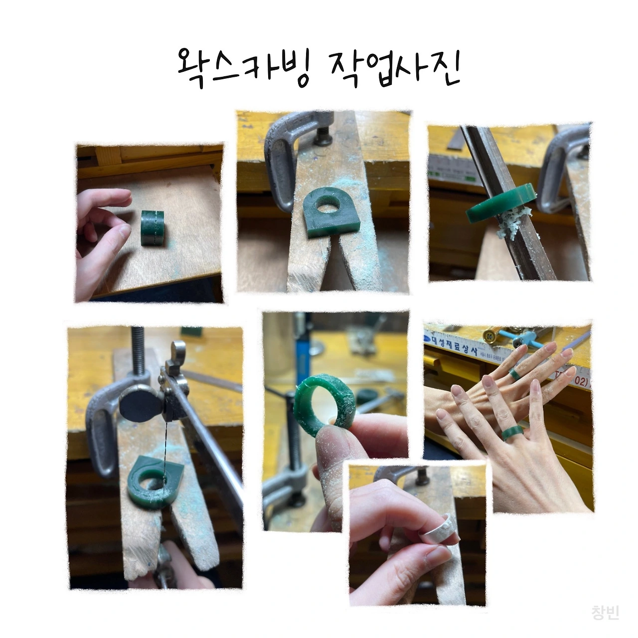 함께 왁스 덩어리를 자르고 깎고 갈아대며 만들어낸 우리만의 결혼반지 :) 세상에 둘도 없는 오직 하나라는 말이 꼭 어울리는 그런 물건이 생겼던 지난날의 기억.