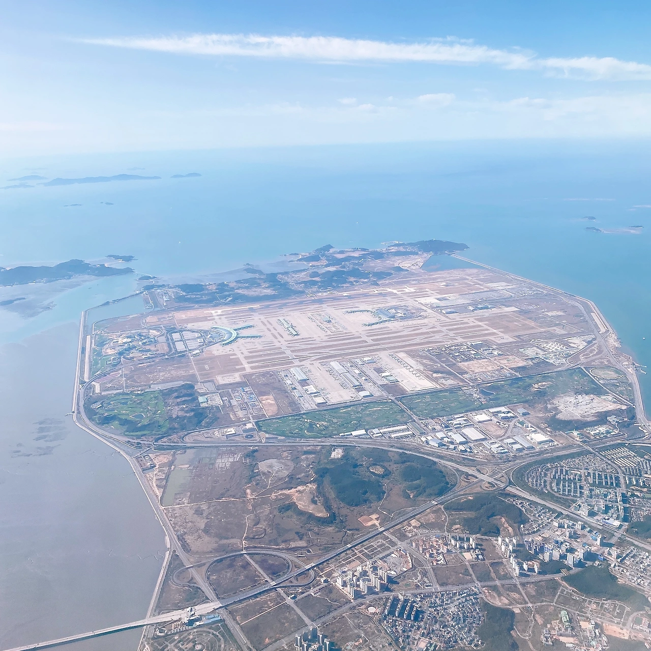 활주로 진입하는 동안 뒤쪽으로 대한항공 747-800을 만났다. F급 대형기라서 김포에는 있을 일이 없을 기종이다. 쟤 인천공항에 있어야 하는데 왜 김포에 있는 거지. 빨리 집으로 돌아와야 하는데, 생각하는 동안 활주로 32R으로 내가 탄 738이 붕- 이륙했다. 김해까지 운항시간은 40분이 걸린다고 한다. 제주도가 아니면 국내선을 타 본 경험이 없어서 더 짧게 느껴졌다. 좌석 앞 선반을 내리는 것조차도 사치인 것 같았다. 좌석벨트 사인이 꺼지는 소리가 나자 익숙한 찰칵찰칵 소리가 났다. 이륙한 비행기는 곧장 김해로 날기 시작했다. 창 아래로 익숙한 인천공항의 모습이 보인다. 터미널이 보이지 않을때까지 눈 인사로 다녀올게, 인사를 했다. 그리곤 아침 퇴근을 한 피곤한 몸으로 비행기에 몸을 실은지라 먹먹한 비행 소리를 자장가 삼아 곧 잠에 빠졌다.