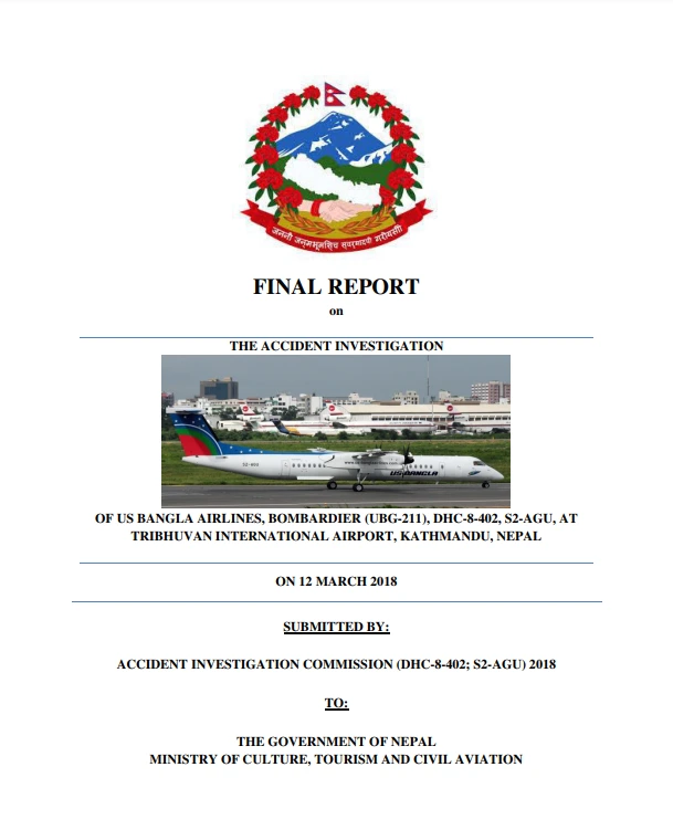 사고조사보고서 : FINAL REPORT on THE ACCIDENT INVESTIGATION OF US BANGLA AIRLINES, BOMBARDIER (UBG-211), ACCIDENT INVESTIGATION COMMISSION