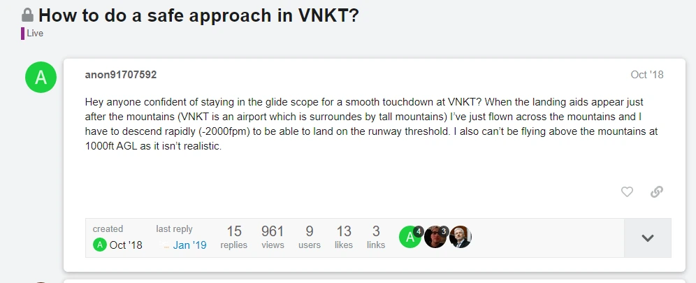 감정을 좀 쏟아낸 후에는 진정이 되었는지, 기장은 교관으로서 해당 섹터 비행이 처음인 부기장을 가르치기 위한 열정을 보이기 시작한다. 항행과 통신을 위한 패널 조작법, 좌표를 알아보는 방법, FMS(Flight Management System) 설정법 등을 가르쳐줬다. 그러고 나서 목적지인 네팔 카트만두 트리부반 국제공항(VNKT) 착륙 준비를 하기 위해 부기장에게 접근 차트를 달라고 할 정도의 정신은 있었다.