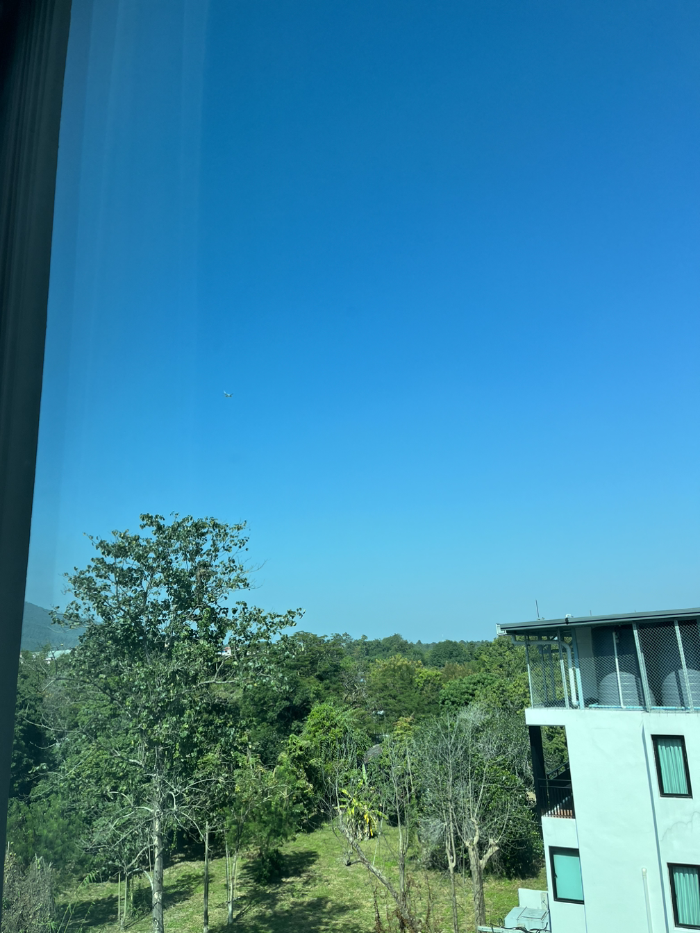그래서 우리는 아침에 햇빛이 강하게 내리쬐어 자칭 암막 커튼을 뚫고 들어오면 눈이 부셔서 잠에서 깬다. 사실 썩 좋은 기분은 아니다(ㅋㅋㅋ). 바로 일어나지 못해 뒹굴거리다가 이대로는 안 된다는 생각과 함께 벌떡 일어나서 바로 커튼을 걷어버리는데. 눈이 부신 것도 잠시 맑디 맑은 파란 하늘을 보면 아무리 피곤해도 기분이 좋아진다. 치앙마이의 콘도들은 모두가 통창이고 부엌 쪽으로 연결된 세탁실까지 통창이라서, 옷 갈아입을 때면 내 집인데도 숨어서 갈아입어야 할 정도지만. 그래도 하늘 보기에는 정말 이만한 것이 없다.