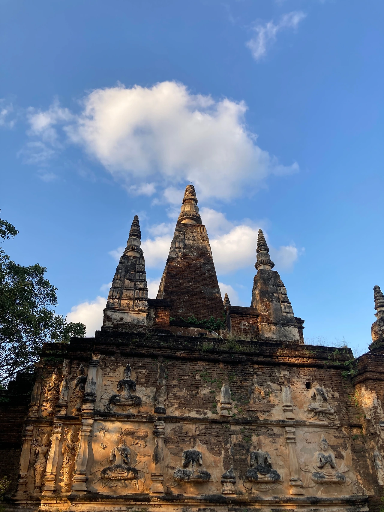 한참 여유를 즐기다 바로 맞은편 사원도 살짝 걸어본다. 치앙마이는 사원이 정말 많고 또 유명한 곳들도 많지만 대체로 시끌벅적한 편인데. 우리집 근처의 왓쩻욧은 정말 조용하고 현지분들만 주로 오가는 느낌이다. 주말이면 두손을 모으고 가족끼리 오시는 걸 보면, 역시 성당이나 교회같은 느낌이려나. 이렇듯 무언가를 염원하는 사람들이 가득하지만 고요한 사원을 거닐다 보면 어느새 늦은 오후가 된다.