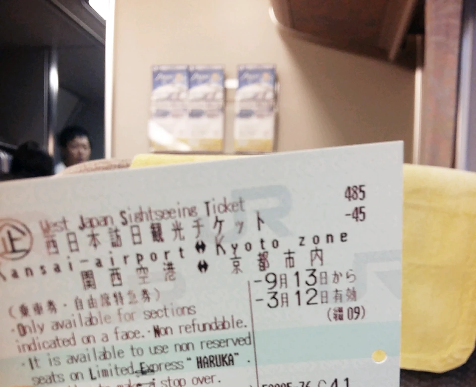 간사이 공항에서 교토까지 이동수단으로 하루카를 이용했어. 자유석 할인티켓 형태라서
