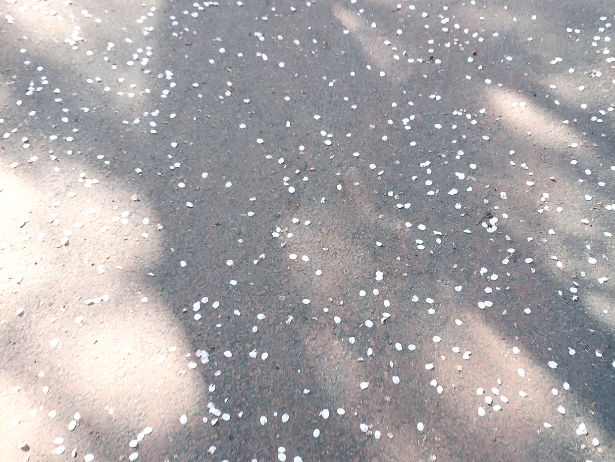 봄의 끄트머리 숲은 벗꽃잎들이 바람에 나부껴 덤으로