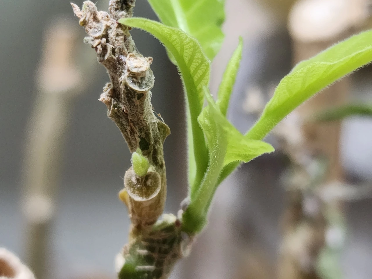 늙고 썩어 보이는 가지에서
