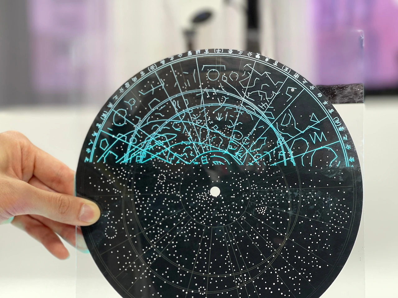 천상열차분야지도는 아크릴과 종이를 결합한 것 하나만으로도 석각을 한 것 같은 원형을 연상시킬 수 있어 가슴 두근거리는 느낌을 받았습니다.