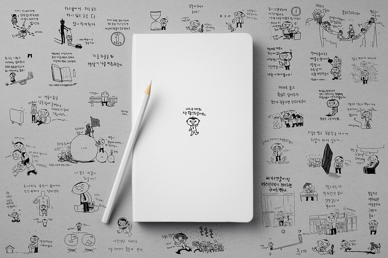낙서의 쓸모 시리즈 사장툰 지난 10년간 연재했던 사장툰을 이번 달에는 퍼즐과 결합된 책을 만날 수 있고 다음 달에는 사장 수첩을 제작합니다.