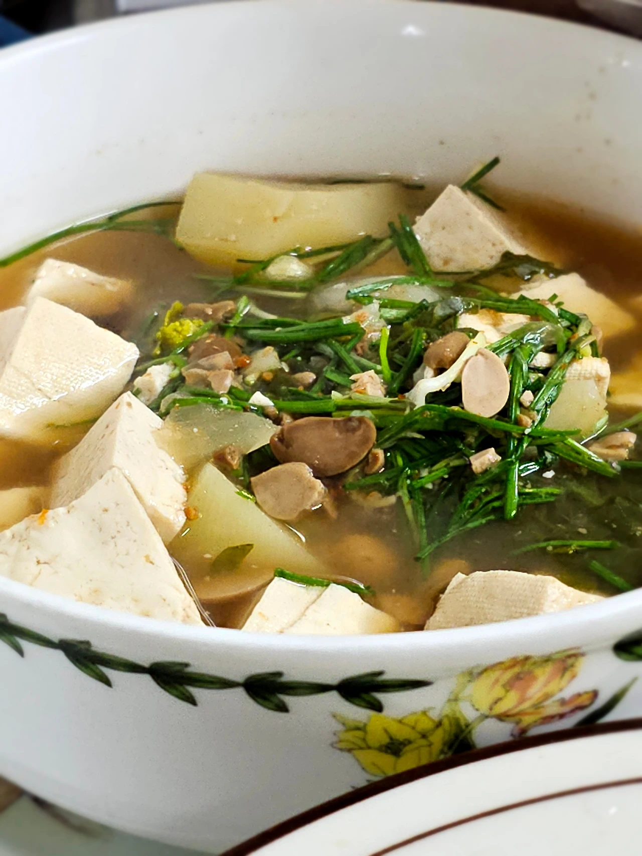 이제 본격적으로 반찬 만들기 돌입이다. 두부를 좋아라 하는 남편을 위해 봄동과 냉이 그리고 냉동실에 보관해 둔 꽃게까지 꺼내 된장국을 끓인다. 보글보글 된장 냄새가 주방을 감쌀 때 옆 가스불에 큰 웍을 올려놓고 고딩딸이 좋아하는 소시지야채볶음, 소야를 하기 시작한다. 파프리카 싫어하는 딸을 위해 당근과 버섯을 듬뿍 넣었다. 딸이 소야를 하나 시식하더니
