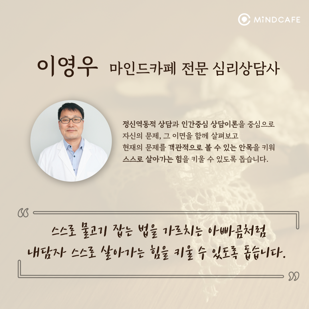 마인드카페 전문 심리상담사 이영우 상담사님의 상담 방식