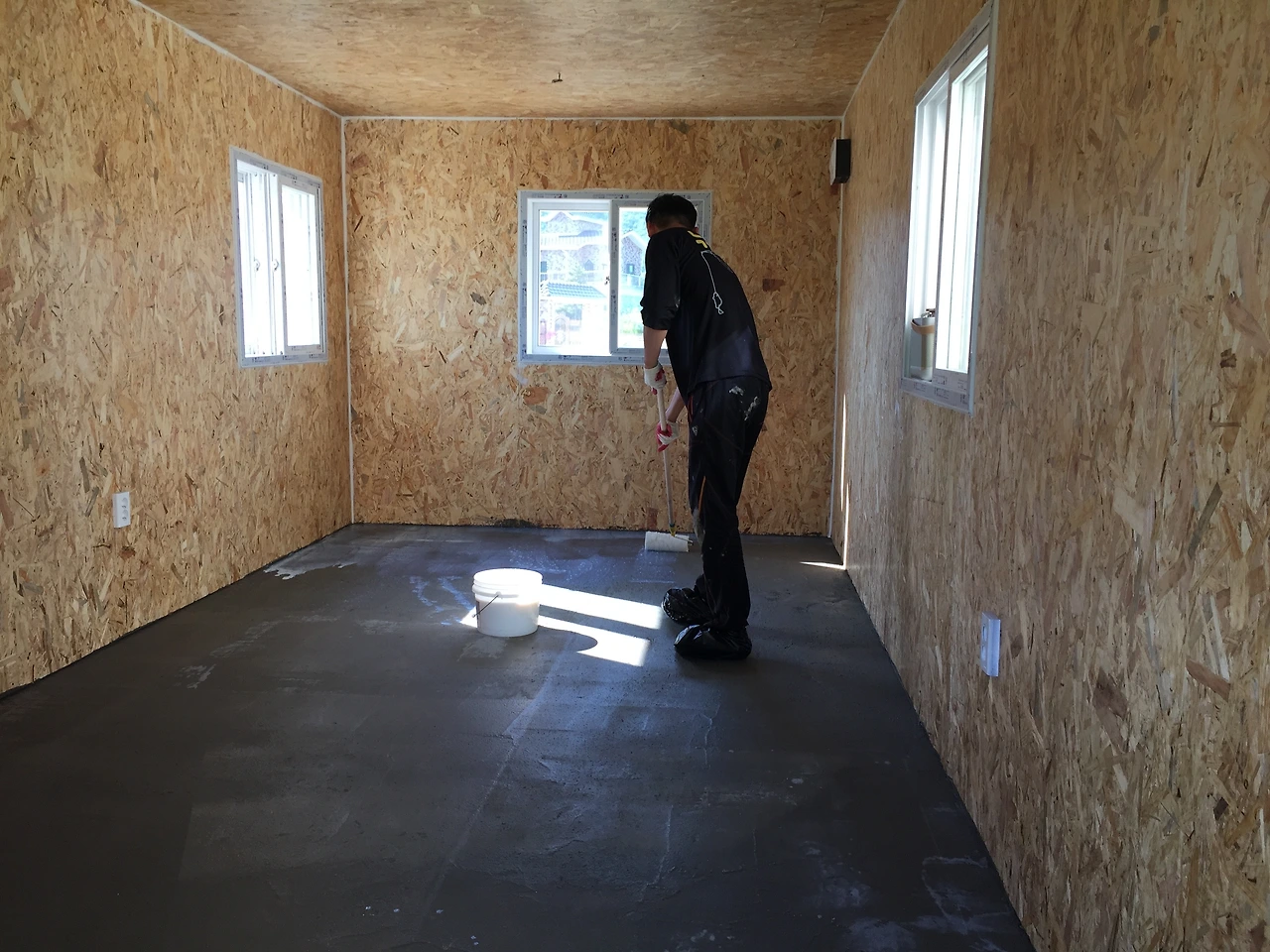 컨테이너는 어두운 회색 밖에 없었다. 잔디와 집 뒤 문수산도 초록이고, 집도 아이보리색인데 작업실만 칙칙했다. 그래서 외부와 내부를 환하게 흰색으로 칠하고 실내 바닥은 카페에 많이 한다는 ‘에폭시’를 시공하기로 했다. 방법은 물론 유튜브 선생님께 배웠다. '유튜브 없었으면 어쩔 뻔했나 몰라…'