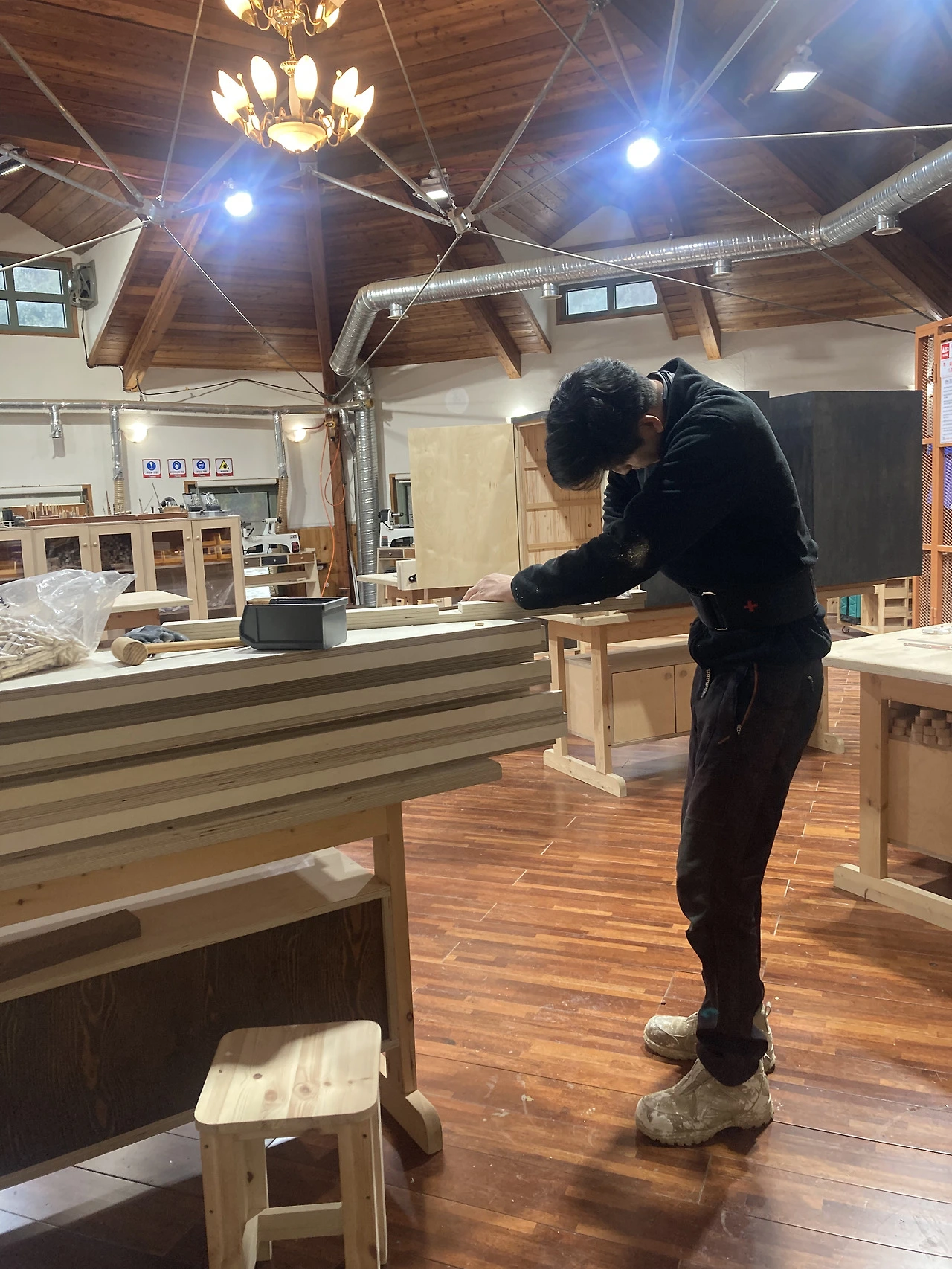 가벽을 만들 땐 친하게 지내는 동네 형부가 와서 도와주셨다. “이 정도면 부부가 부업으로 인테리어 공사하러 다녀도 되겠다.” 우리가 지금까지 해놓은 걸 보고 형부가 칭찬해 주셨다. 어깨가 으쓱했다. 공방에서 쓸 싱크대, 테이블, 의자, 선반은 목공을 취미로 하고 있는 남편이 만들었다. 쉬는 날이면 틈틈이 가서 나무 만지는 걸 연습하더니 어느새 맥가이버가 다 돼 있었다.